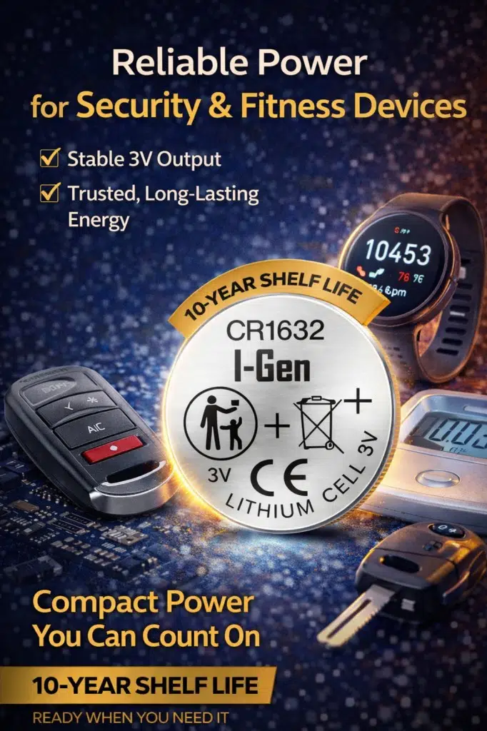 I-Gen CR1632 lityum düğme pilleri, uzun ömürlü ve kesintisiz enerji ihtiyacınızı karşılamak için tasarlandı. Araç kumandalarından saatlere, medikal cihazlardan elektronik aksesuarlara kadar birçok cihazda güvenle kullanabilirsiniz. Yüksek kalite lityum hücresi sayesinde uzun süre dayanır, sık pil değişimi derdine son verir.