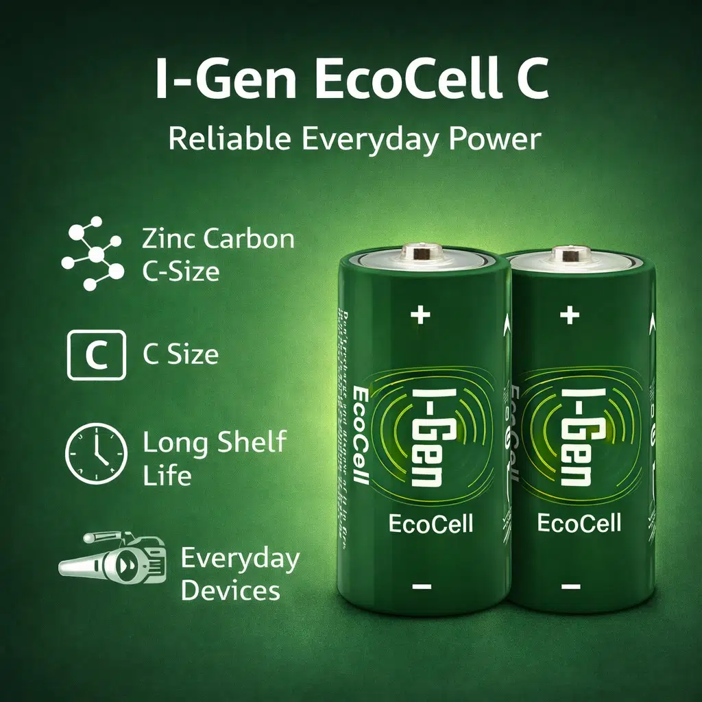 I-Gen Ecocell Çinko Karbon C Boy (R14) piller, düşük ve orta enerji tüketimi gerektiren cihazlar için uygun maliyetli ve güvenilir bir enerji kaynağı sunar. 1.5V sabit voltajı sayesinde cihazlarınızda istikrarlı bir performans sağlar. El fenerleri, taşınabilir radyolar, oyuncaklar ve diğer C boy pil gerektiren cihazlar için idealdir.
