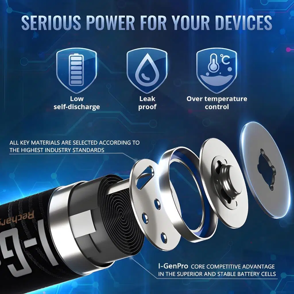 Şarj Edilebilir NiMH Teknolojisi: NiMH teknolojiye sahip bu piller, uzun ömürlü ve çevre dostudur. NiMH piller, geleneksel pillerden çok daha fazla şarj döngüsü sağlar, bu da uzun süreli kullanım imkanı tanır.