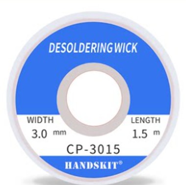 3.0 mm genişlik ve 1.5 m uzunluğa sahip bu lehim fitili, yüksek kaliteli bakır tel örgüden üretilmiştir.