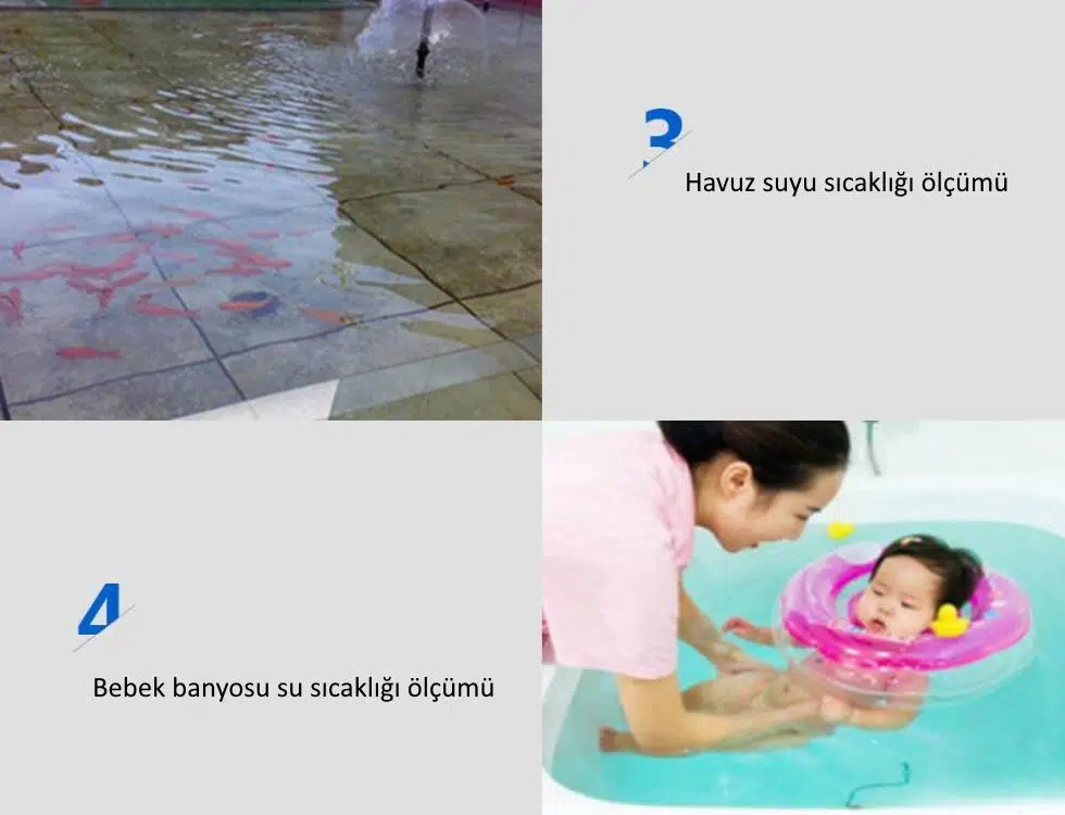 -50°Cile +100°C arasında sıcaklıkları ölçmek için kullanabileceğiniz su geçirmez uca sahip termometredir.