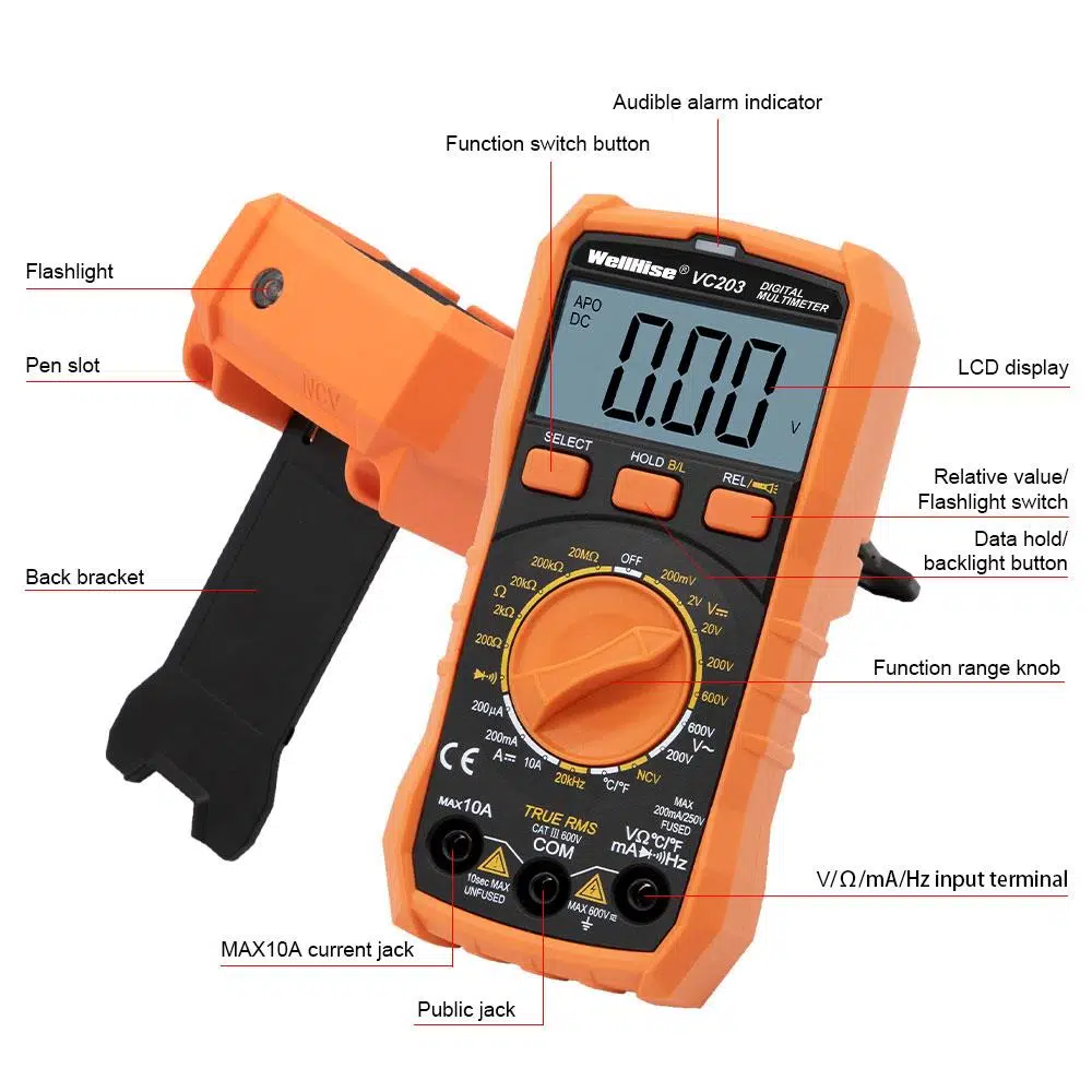 | Etiketler | WellHise VC203 Ölçü Aleti Multimetre Avometre NCV Işıklı Ekran El Feneri Isı Ölçer |