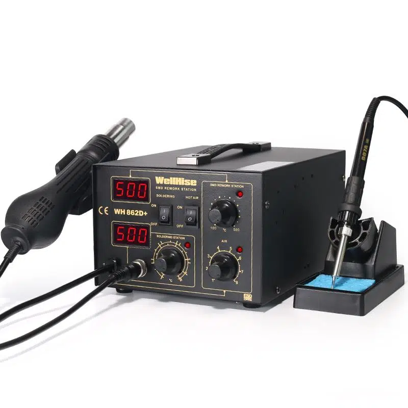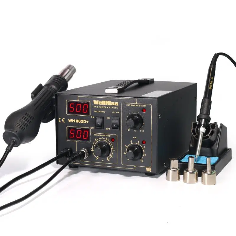 WellHise WH-862D+, profesyonel elektronik tamir ve lehimleme işlemleri için tasarlanmış yüksek performanslı bir sıcak hava üflemeli havya istasyonudur.