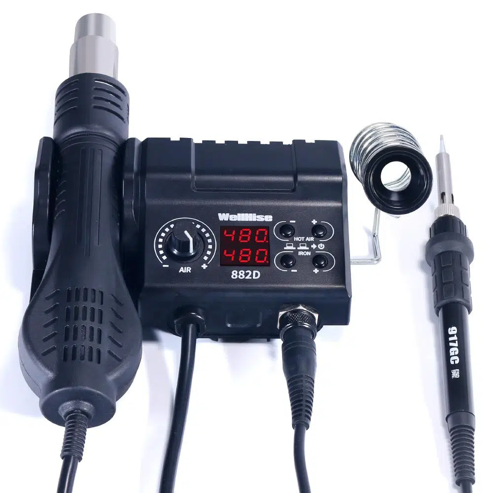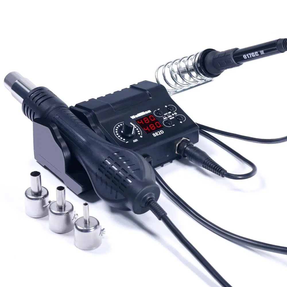 WellHise WH-882D, profesyonel lehimleme ve elektronik tamir işlemleriniz için tasarlanmış dijital sıcak hava üflemeli havya istasyonudur.